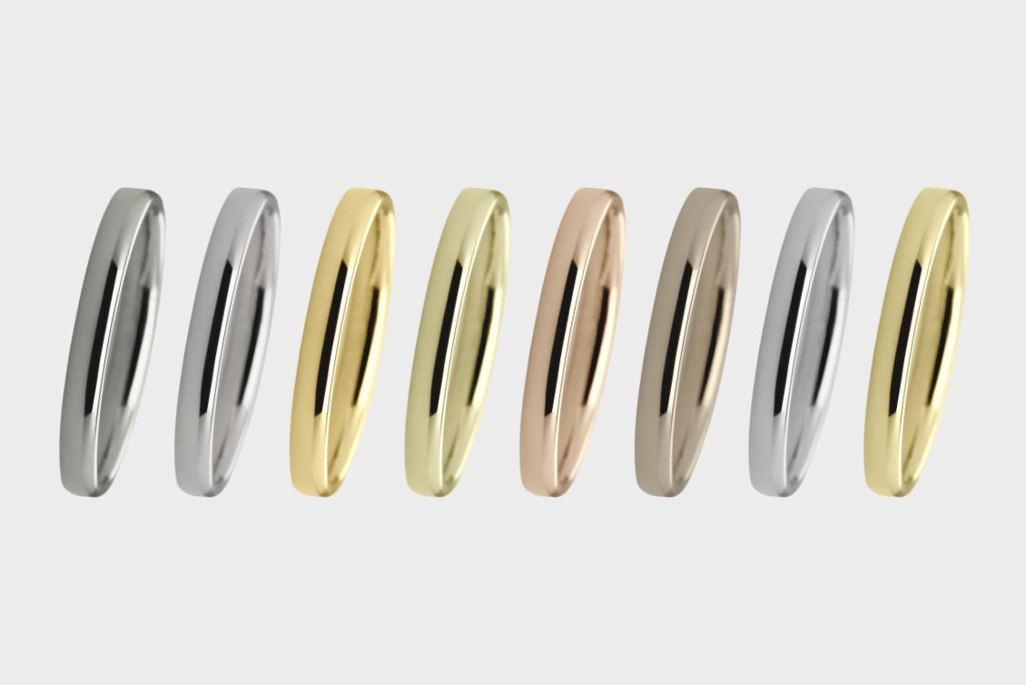 お好みに合わせて地金素材をお選びいただけます。プラチナ950(Pt950)はもちろん、多種多様なゴールド素材や金属アレルギーのかたでも安心して着用いただける素材も複数ご用意しております。
