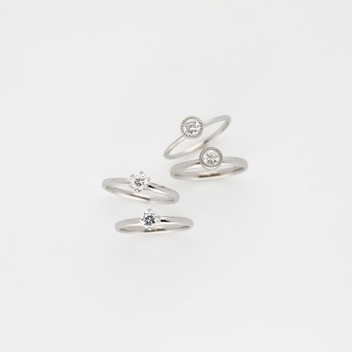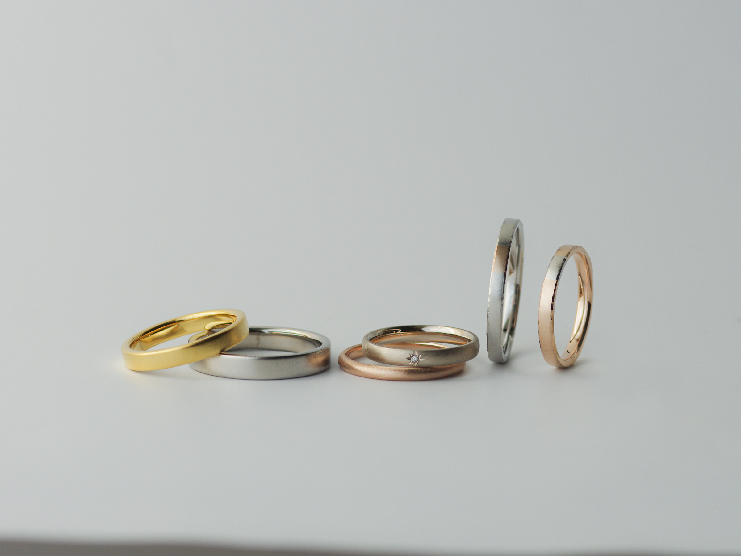 シンプルから個性的なデザインまで幅広く揃え、おふたりらしい特別な指輪をお作り頂けます。