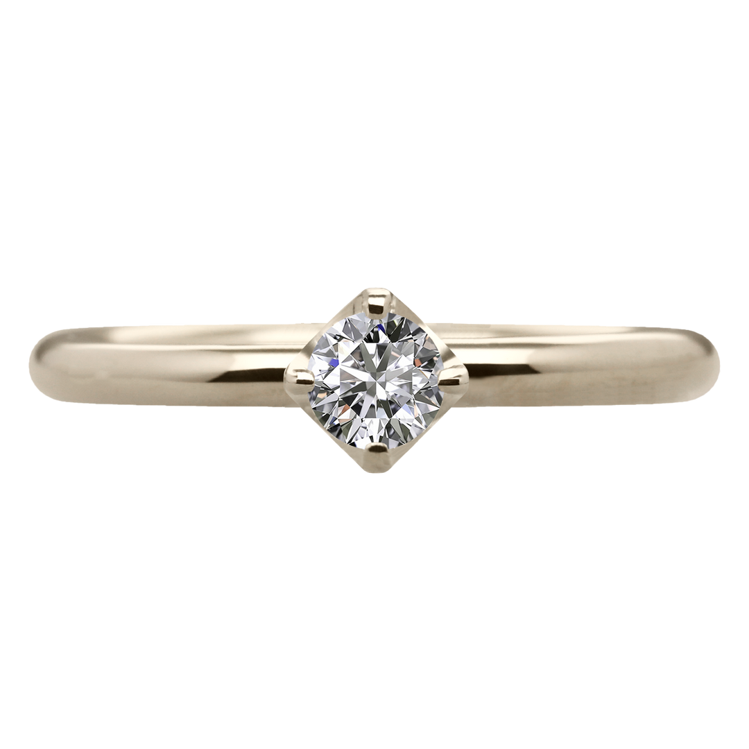この指輪のリングアームは丸型状に作られているため指に優しくフィットする着け心地で、シンプルな4本爪のデザインは、どんなシーンにも合わせやすく、長く愛用していただけます。