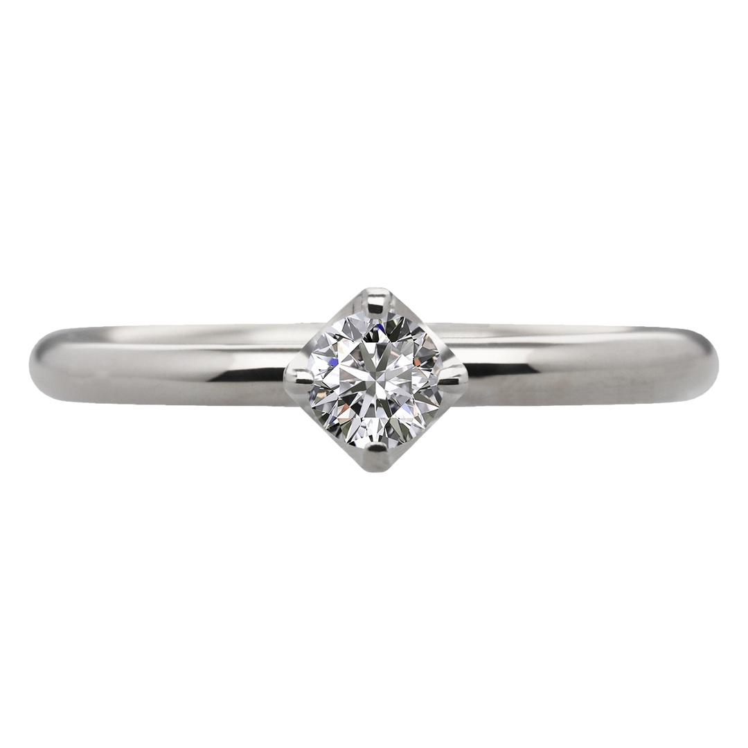 この指輪のリングアームは丸型状に作られているため指に優しくフィットする着け心地で、シンプルな4本爪のデザインは、どんなシーンにも合わせやすく、長く愛用していただけます。