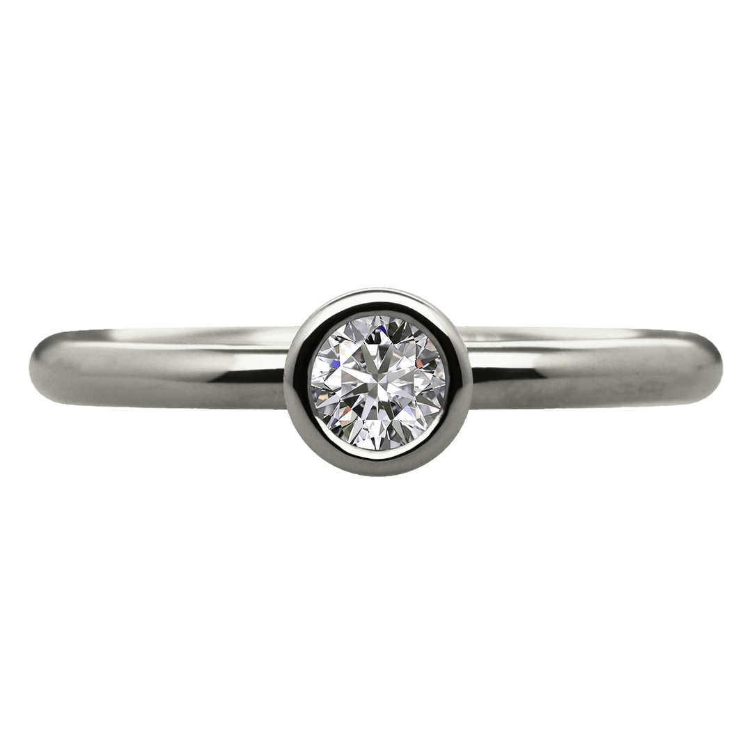 この指輪のリングアームは丸型状に作られているため指に優しくフィットする着け心地で、椿の花をイメージしたシンプルでエレガントなフクリンデザインが特徴で、ダイヤを包み込む優しいカーブは椿の花びらを模しています。