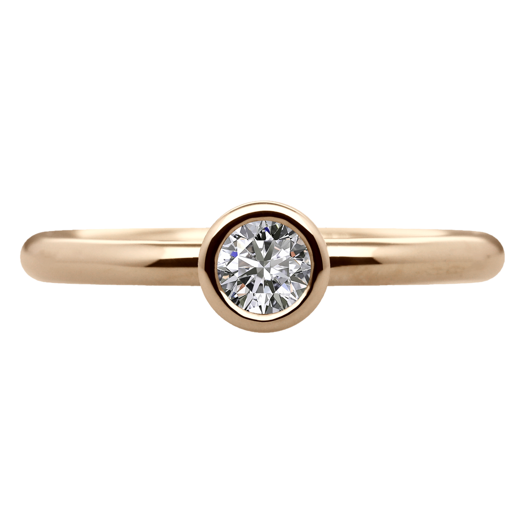 この指輪のリングアームは丸型状に作られているため指に優しくフィットする着け心地で、椿の花をイメージしたシンプルでエレガントなフクリンデザインが特徴で、ダイヤを包み込む優しいカーブは椿の花びらを模しています。