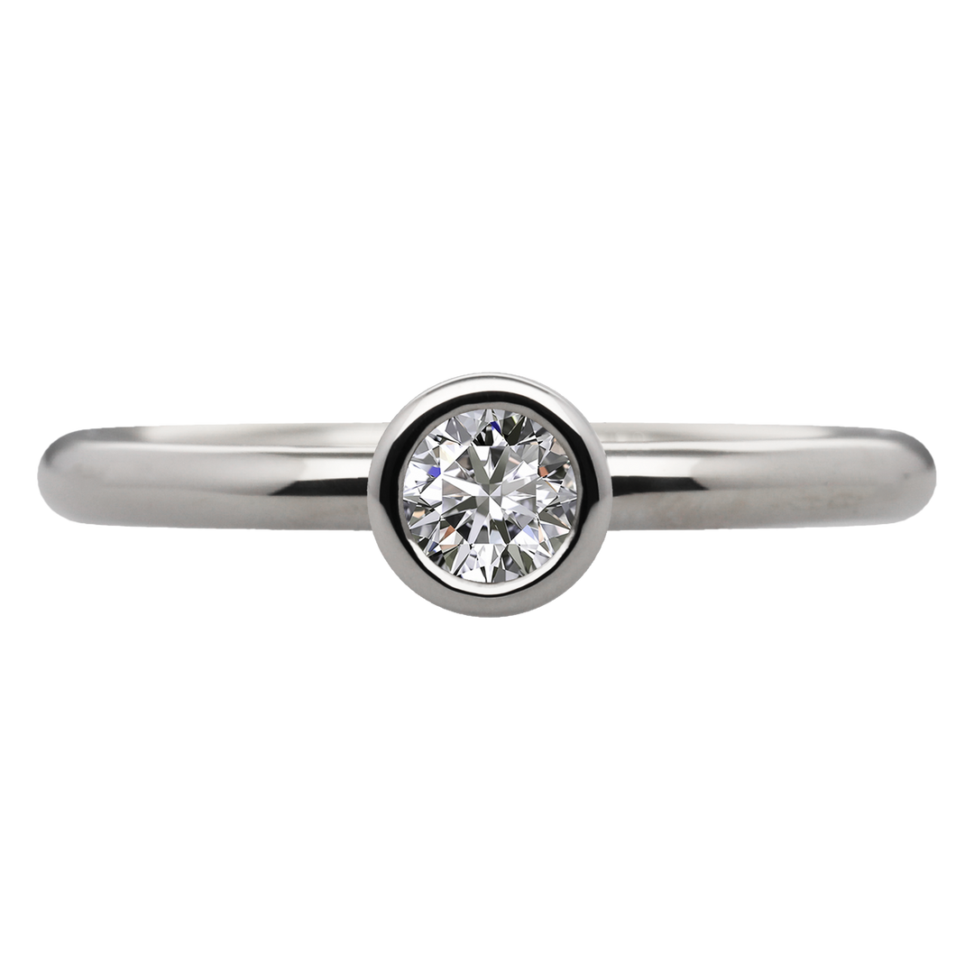 この指輪のリングアームは丸型状に作られているため指に優しくフィットする着け心地で、椿の花をイメージしたシンプルでエレガントなフクリンデザインが特徴で、ダイヤを包み込む優しいカーブは椿の花びらを模しています。