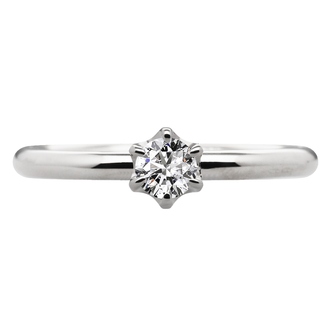 この婚約指輪は、アームは丸線のシンプルなデザインで仕上げ、6本爪の王道デザインは、どんなシーンにも合わせやすく、長く愛用していただけます。