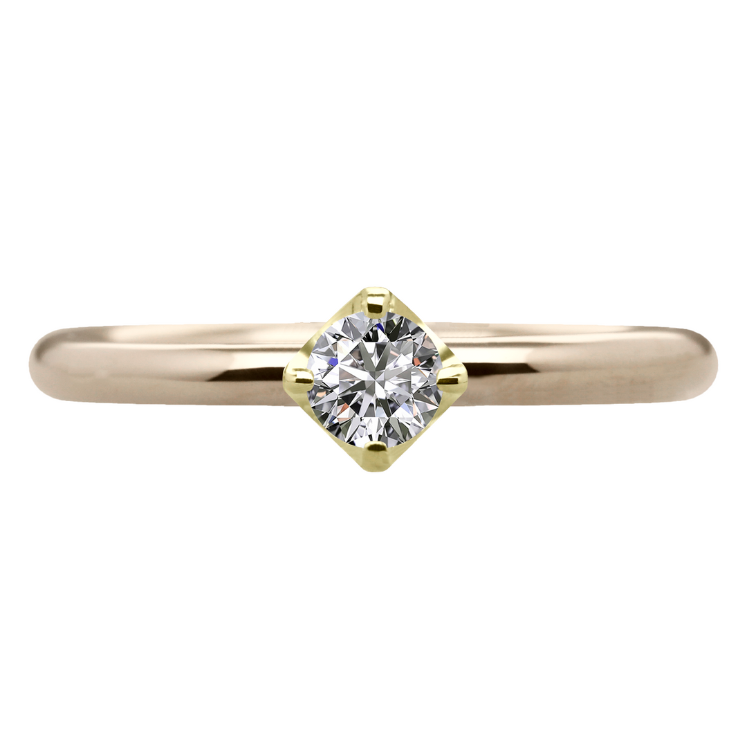 ふたつの地金素材の組み合わせにより、指輪に奥行きと美しいコントラストが生まれ、シンプルな4本爪のデザインは、どんなシーンにも合わせやすく、長く愛用していただけます。