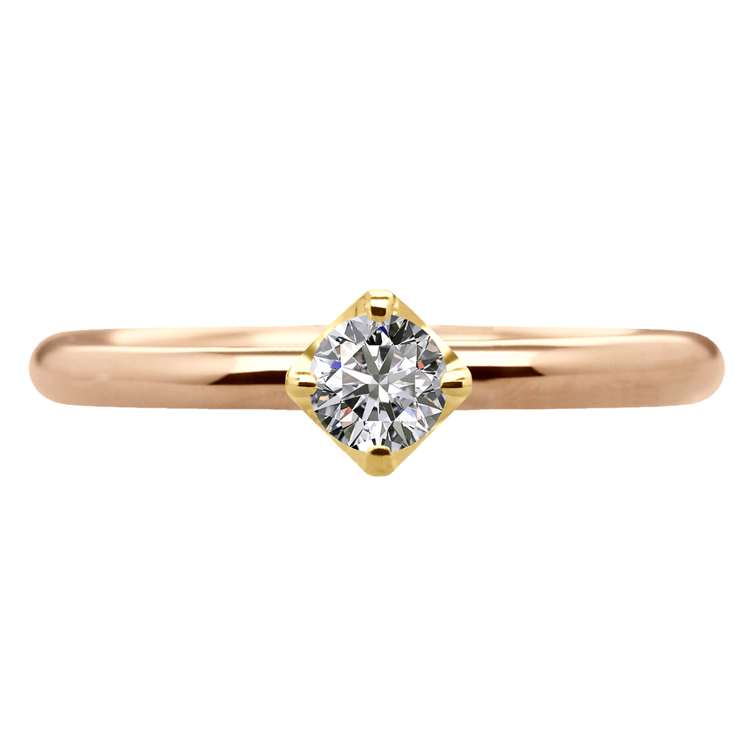 ふたつの地金素材の組み合わせにより、指輪に奥行きと美しいコントラストが生まれ、シンプルな4本爪のデザインは、どんなシーンにも合わせやすく、長く愛用していただけます。