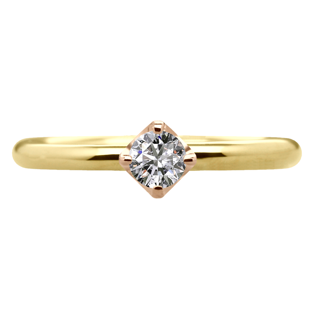 ふたつの地金素材の組み合わせにより、指輪に奥行きと美しいコントラストが生まれ、シンプルな4本爪のデザインは、どんなシーンにも合わせやすく、長く愛用していただけます。