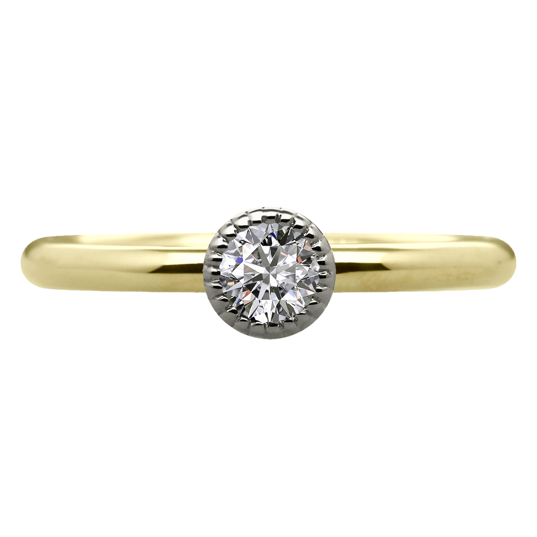 この指輪は、ふたつの異なる地金素材を組み合わせたデザインが特徴。「千の粒」を意味するミルグレインには、「幸せがたくさん訪れる」「長く愛が続く」といった願いが込められています。