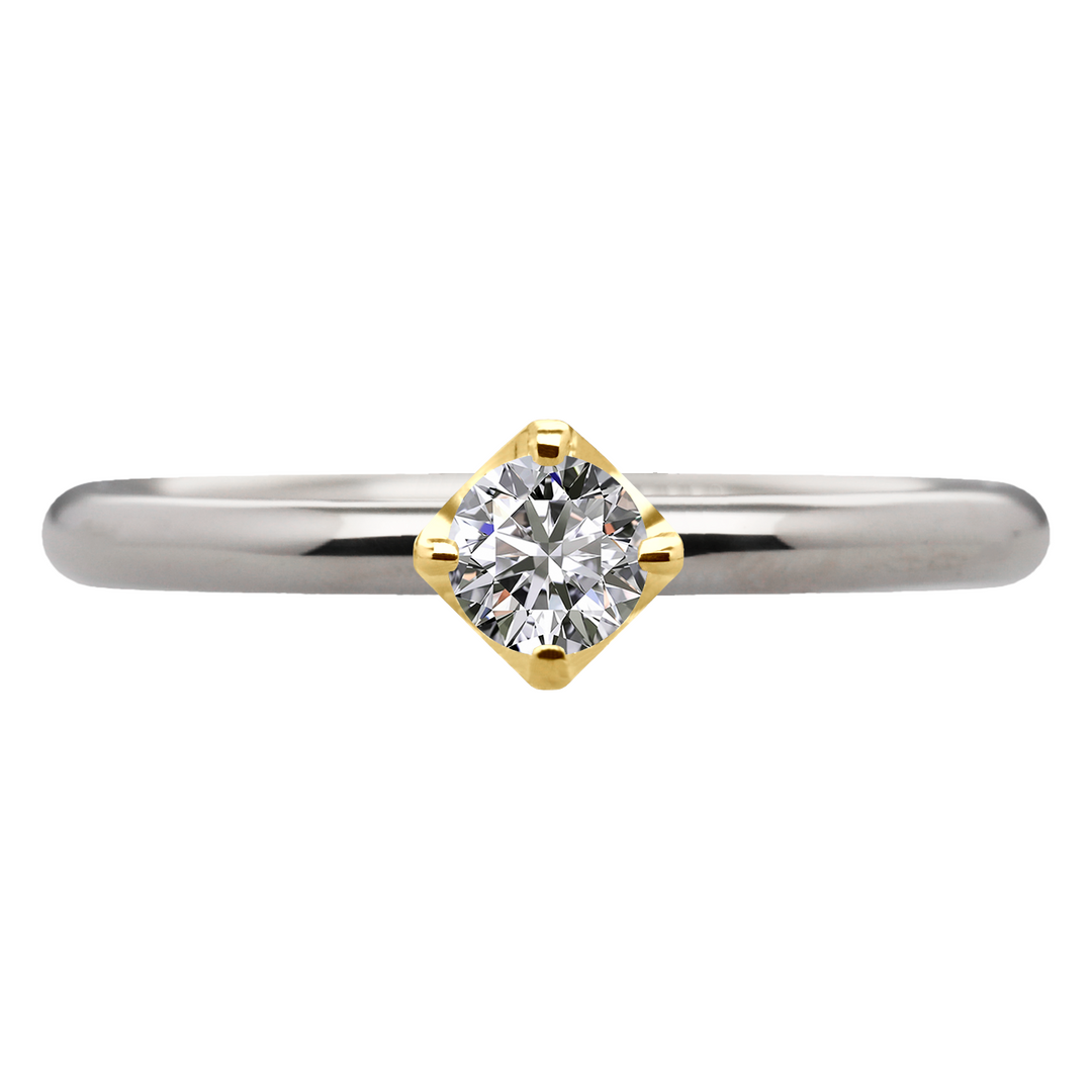 ふたつの地金素材の組み合わせにより、指輪に奥行きと美しいコントラストが生まれ、シンプルな4本爪のデザインは、どんなシーンにも合わせやすく、長く愛用していただけます。