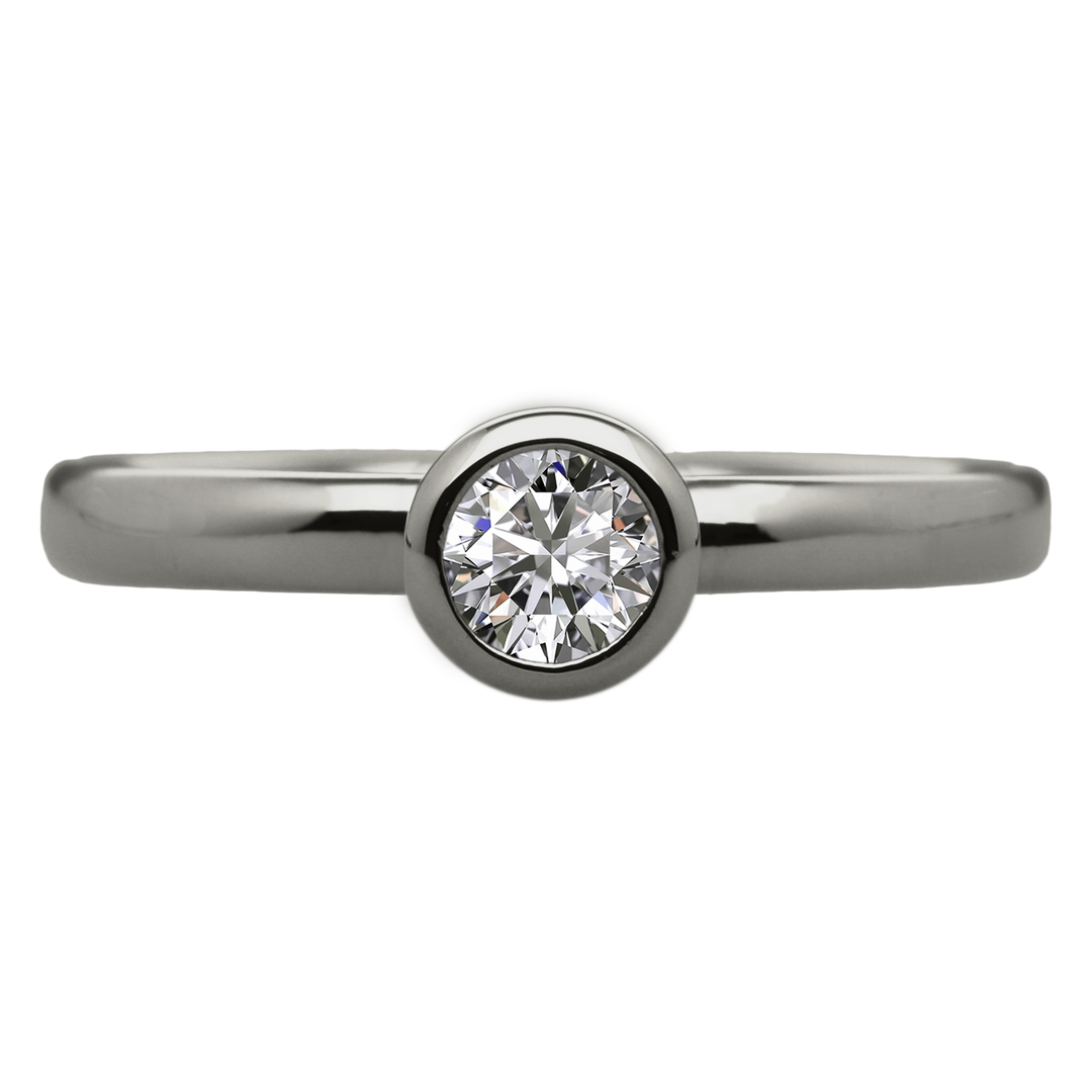この婚約指輪は、椿の花をイメージしたシンプルでエレガントなフクリンデザイン。ダイヤを包み込む優しいカーブは、椿の花びらを模しており、上品で温かみのある印象を与えます。