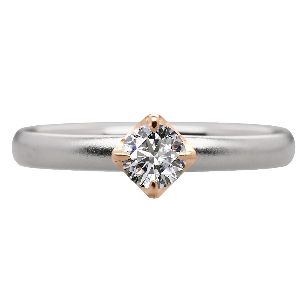 春に美しく咲くハナミズキの花は、愛の告白に使われてきたことから「私の想いを受けとめてください」、そして「永続性」という木言葉を持ち、結婚の誓いにふさわしい花とされています。 この指輪は、シンプルな4本爪のデザインが特徴。ダイヤモンドの輝きを最大限に引き出し、どんなシーンにも馴染む洗練されたスタイルです。