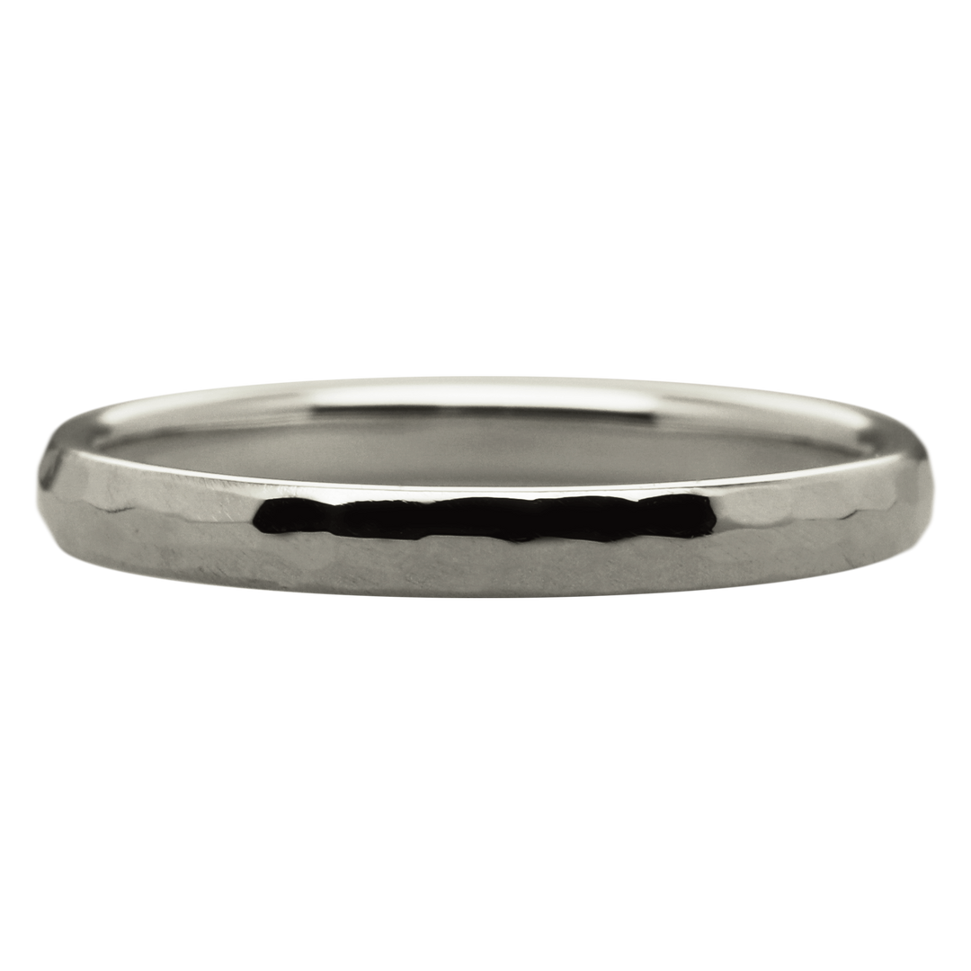 表面には月のようなデコボコした鎚目加工を施し、独特の輝きを演出。二人の絆が年月とともに深まり、指輪もともに寄り添い続けます。