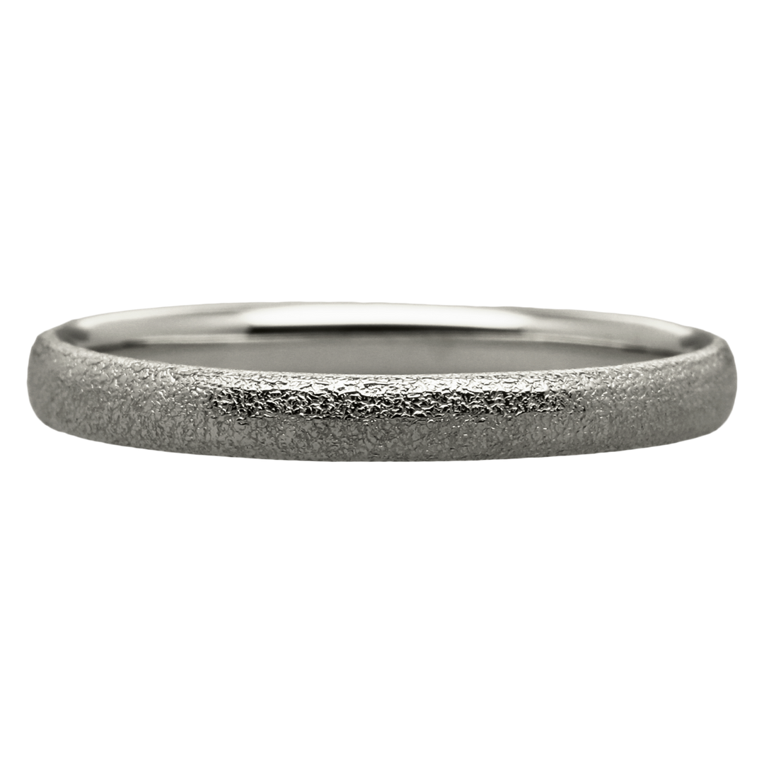 鍛造製法で作るフラットデザインの結婚指輪。強度が高く、一生ものにふさわしい輝きを宿します。