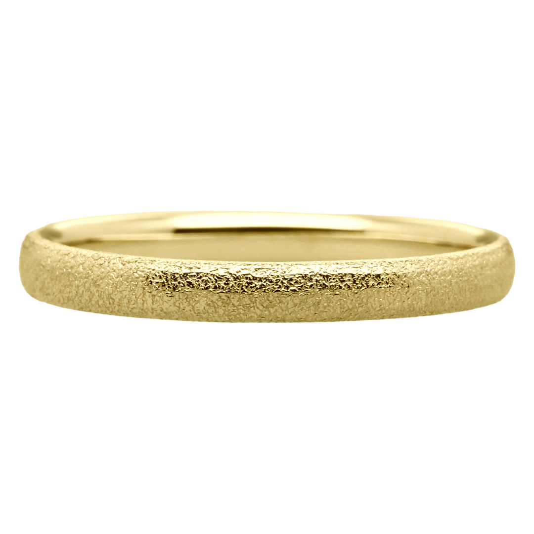 鍛造製法で作るフラットデザインの結婚指輪。強度が高く、一生ものにふさわしい輝きを宿します。